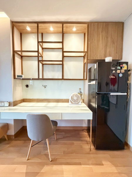 - ครัวบิวท์อิน พร้อมชั้นเก็บของด้านบน และเครื่องดูดควัน