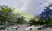 Surrounded by department stores, schools, hospitals such as