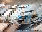 "Focus & Inspire: Dedicated workspace by the window - perfect for WFH with a skyline view."